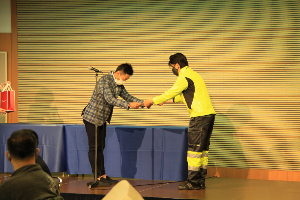 一年間の営業成績や、レッカーの出動件数等の表彰式が行われます。